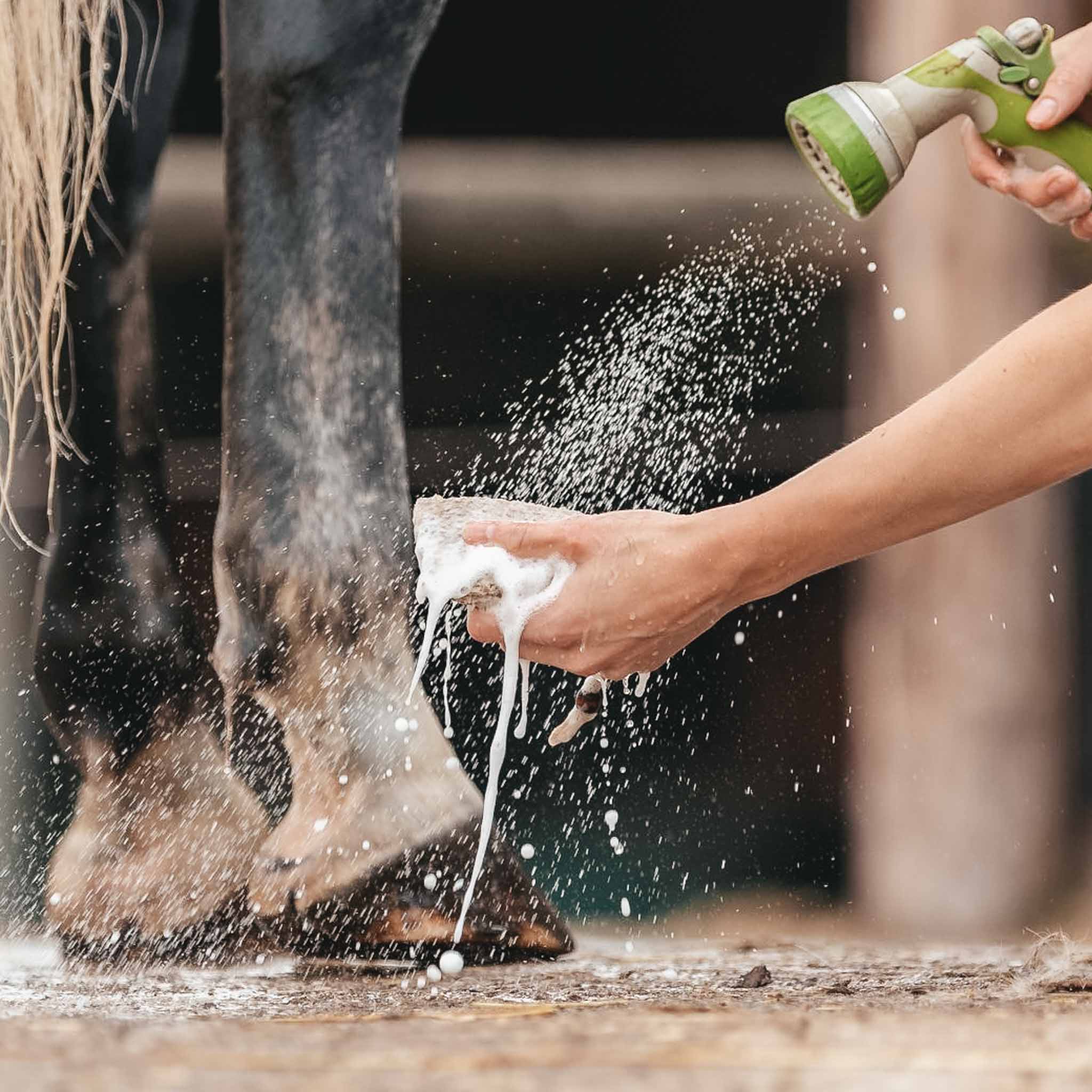 - Maak je paard / hond of een gedeelte van het lichaam nat